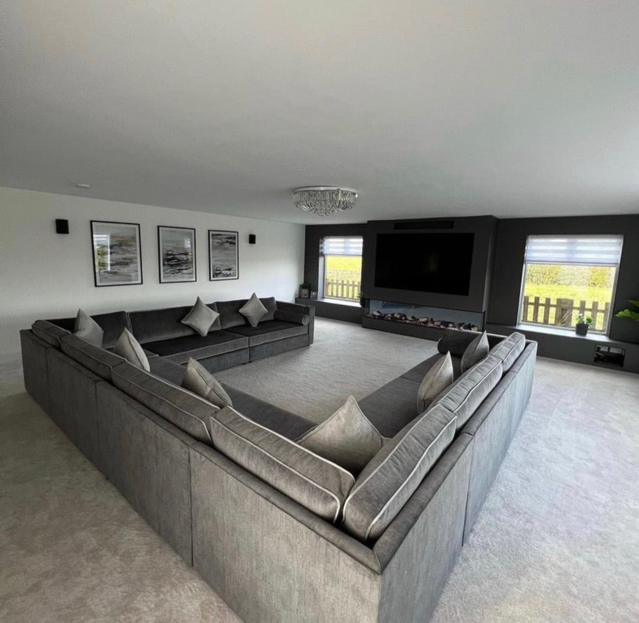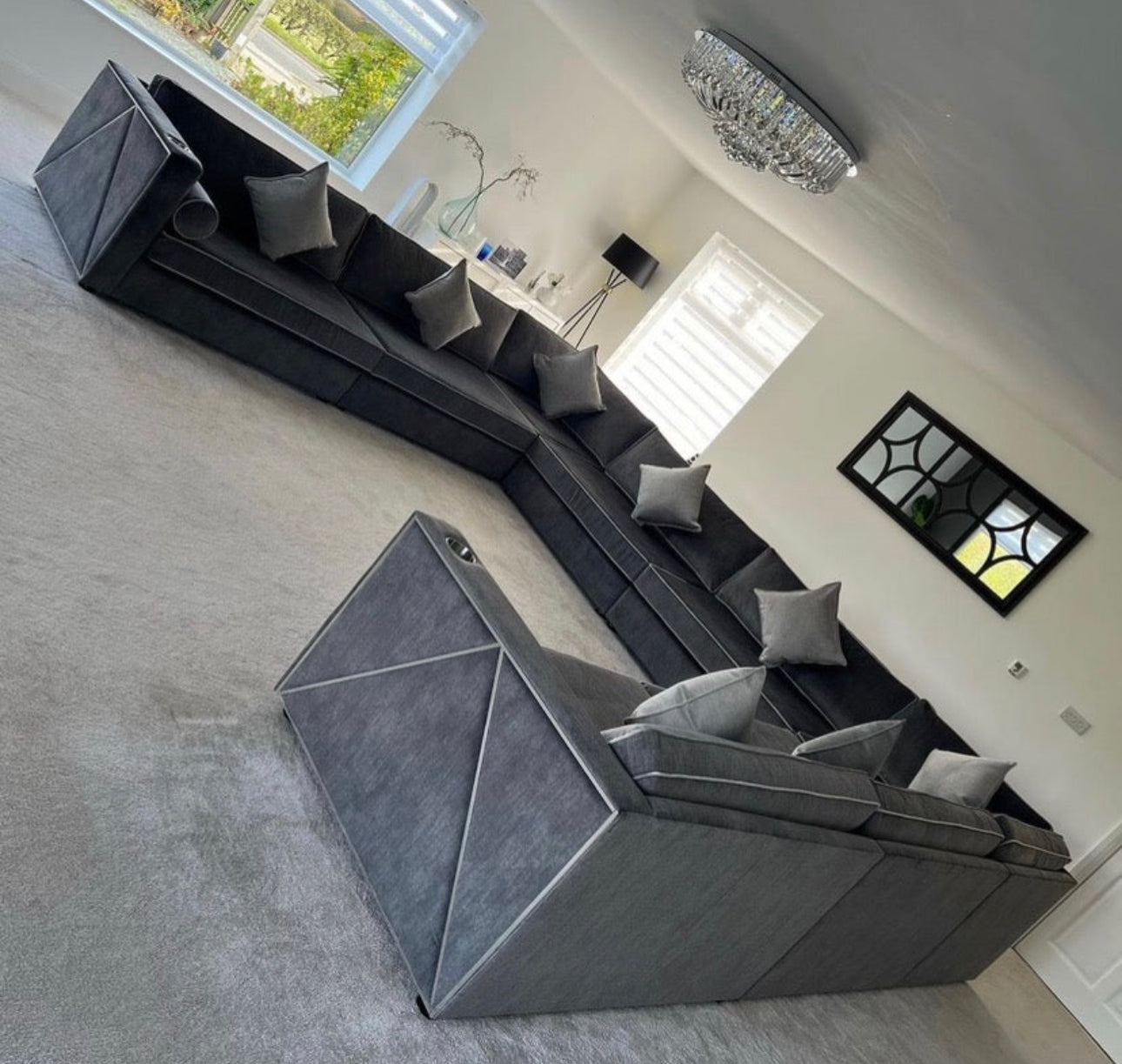 Alara U Shape Piped Sofa With Cup Holders