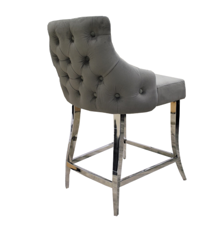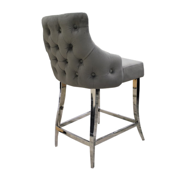 The Capri crushed velvet bar stools beautifully designed with a vibrant padded seat paired with elegant stainless steel curved legs making them a stylish addition to a modern dining space.