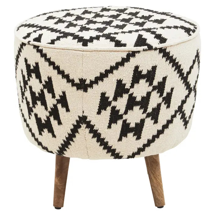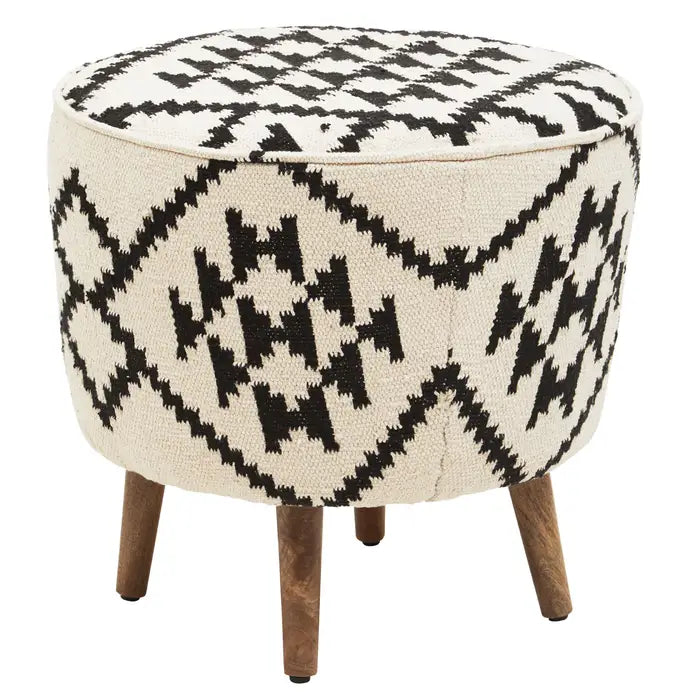 A combination of form and function, this monochrome footstool with wooden legs can be placed beside main sofa or centre table for extra seating.