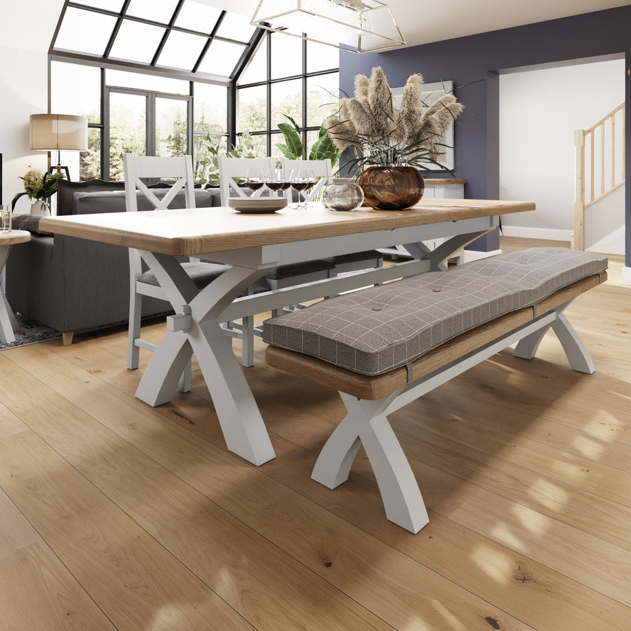 With beautiful modern Grey painted finish and rounded corners, this collection brings a sumptuous and elegant traditional style that is set to complement any interior. Impressive quality runs through every detail, from the thick oak tops and solid proportions