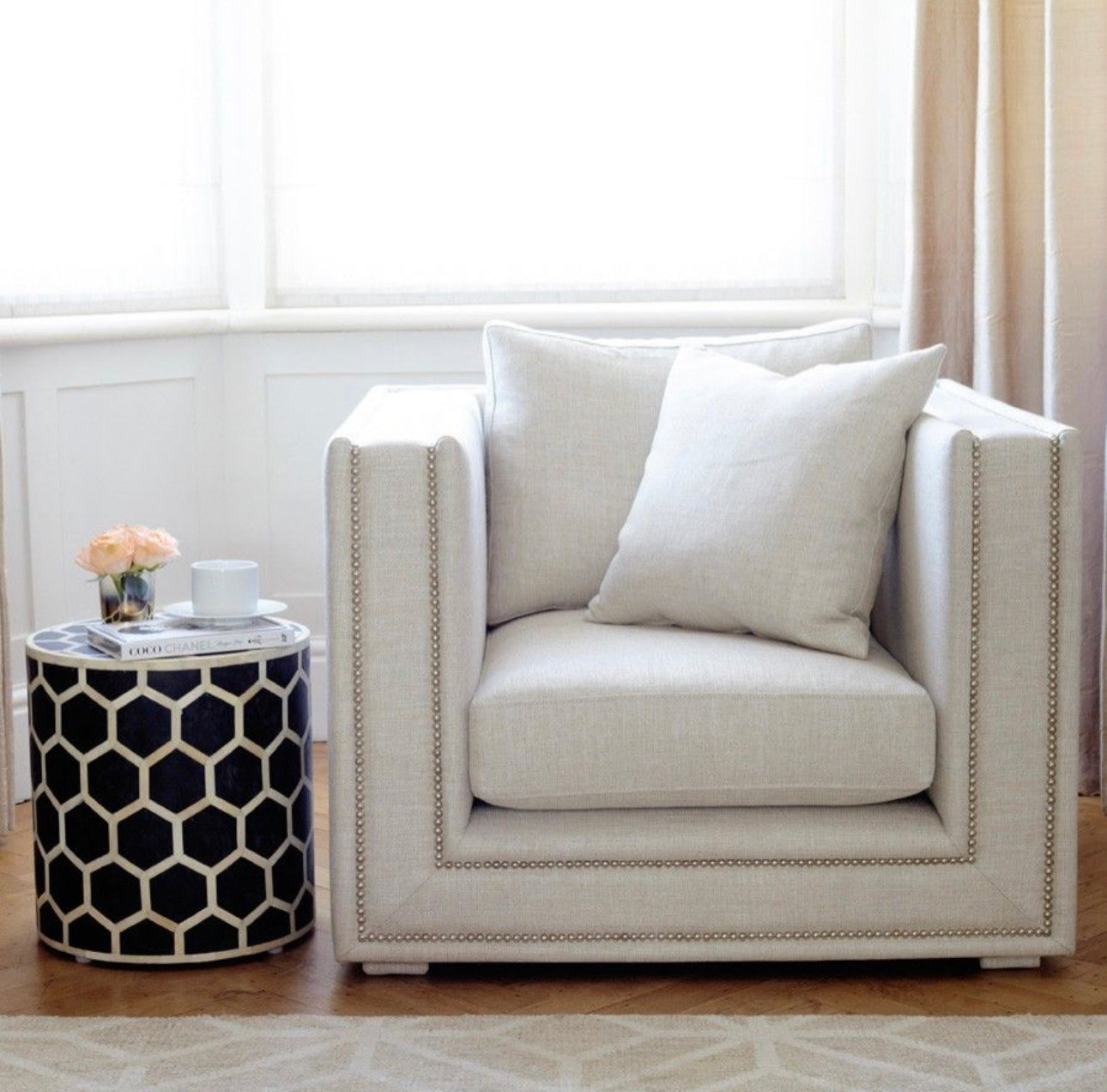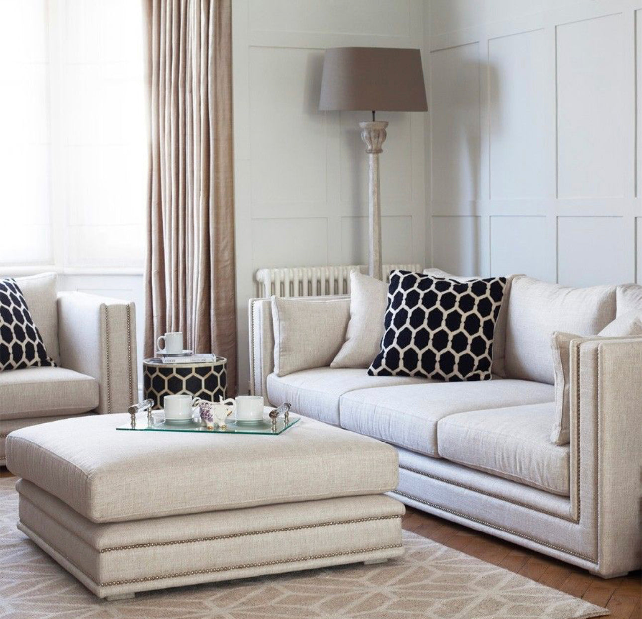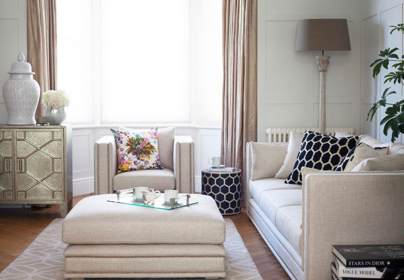 This luxury designer sofa can be found in apartments and townhouses throughout the country! With clean cut lines and sumptuous upholstery, it's perfect to snuggle up on. Hand fixed studs completes the exclusive look while the piece retains its comfort aura. The ideal combination for every home.