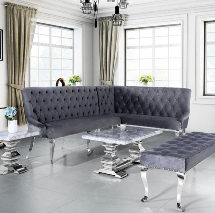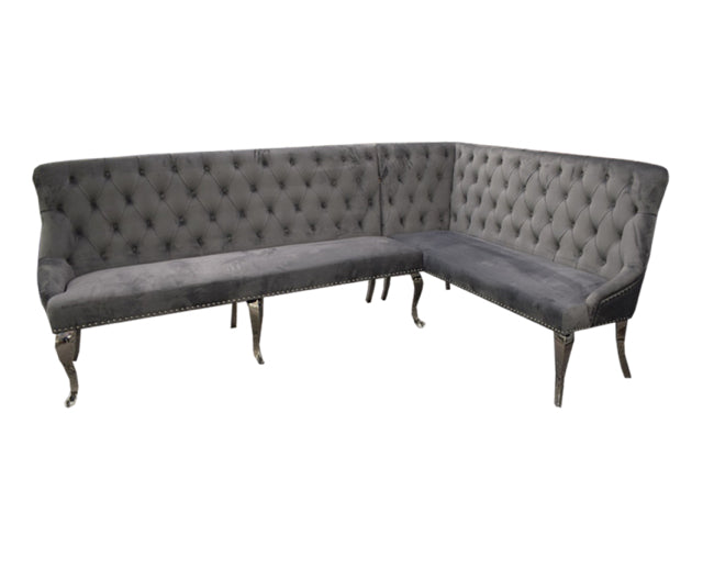 The Louis corner bench is a deep padded upholstered corner bench with cushioned backrest.