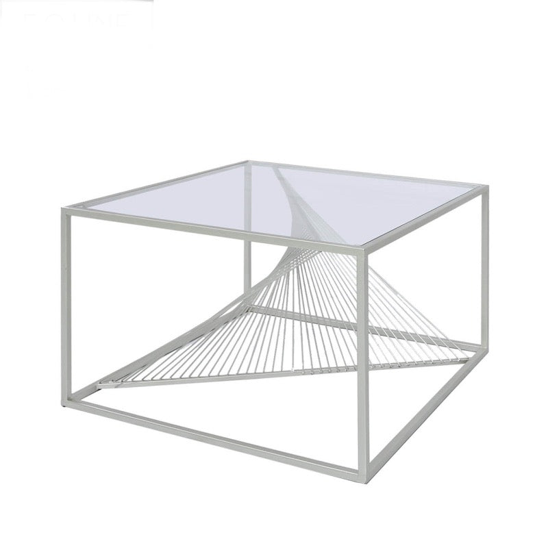 The Lorna coffee table features an eye-catching metallic structural design in Silver with a Champagne touch, and a transparent glass tabletop to showcase modern elegance in your house.