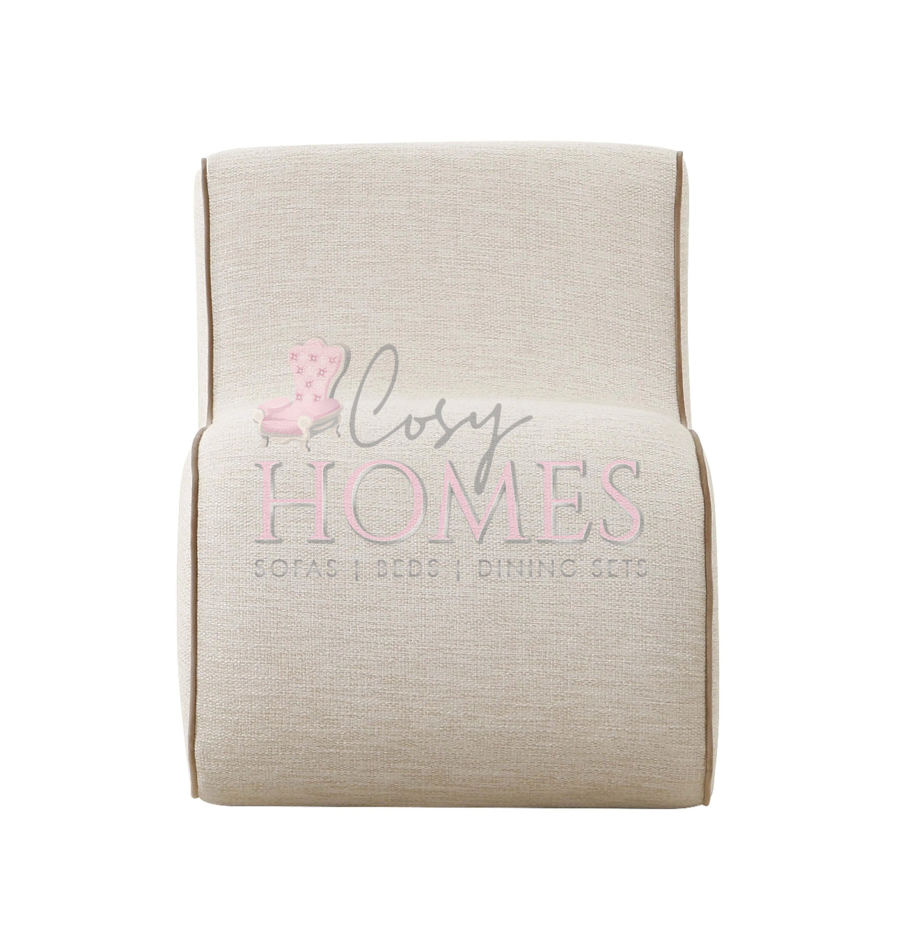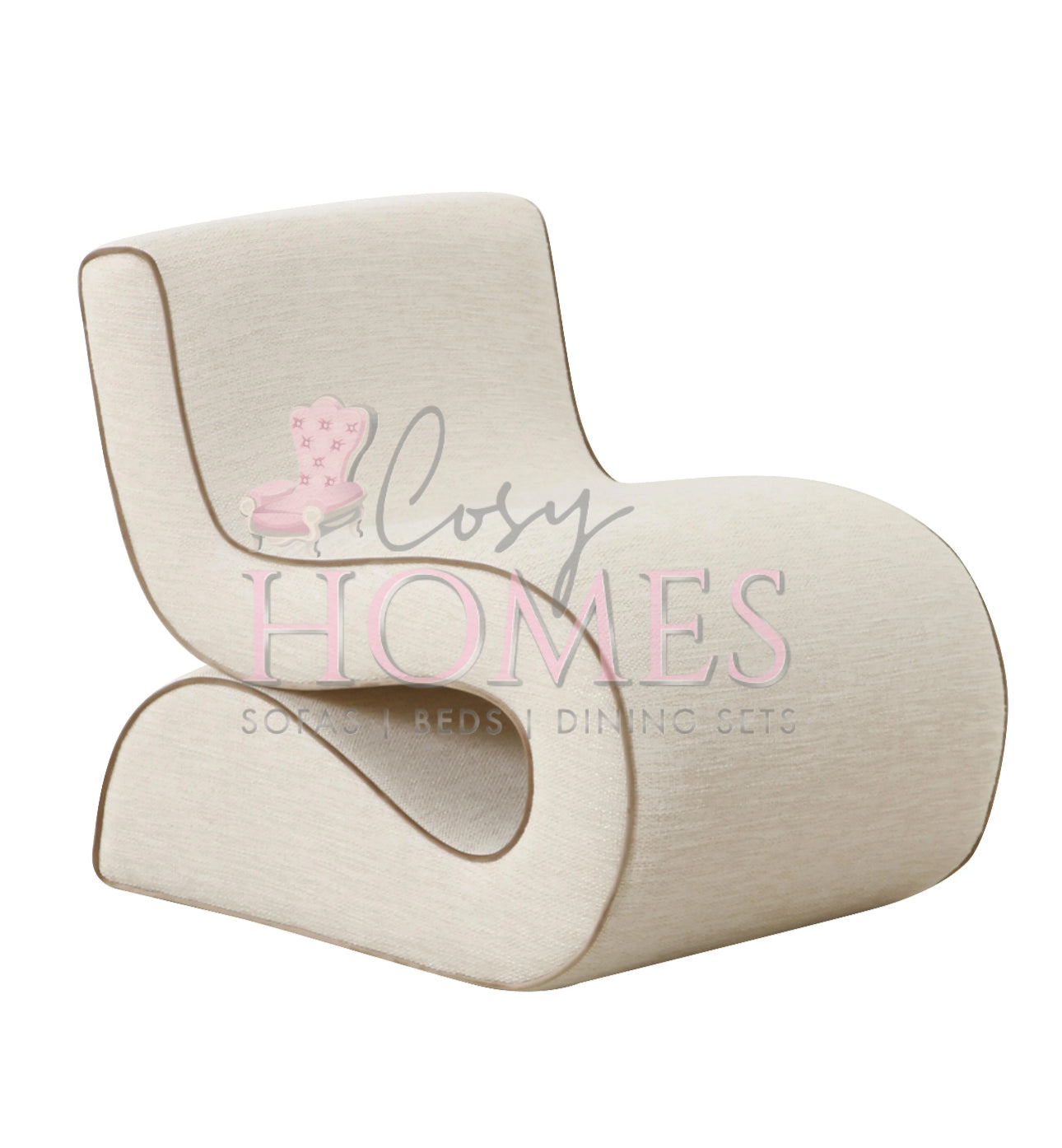 Join the wave of the future with the state-of-the-art misty chair. Our sexy take on the wiggle chair, it features a contemporary amorphous design, upholstered in a textural basketweave fabric, supported by a sturdy birch frame, and accented with a subtle contrast velvet piping - this chair has it all! Add this piece to any space for an air of eccentricity and for a definite conversation starter.