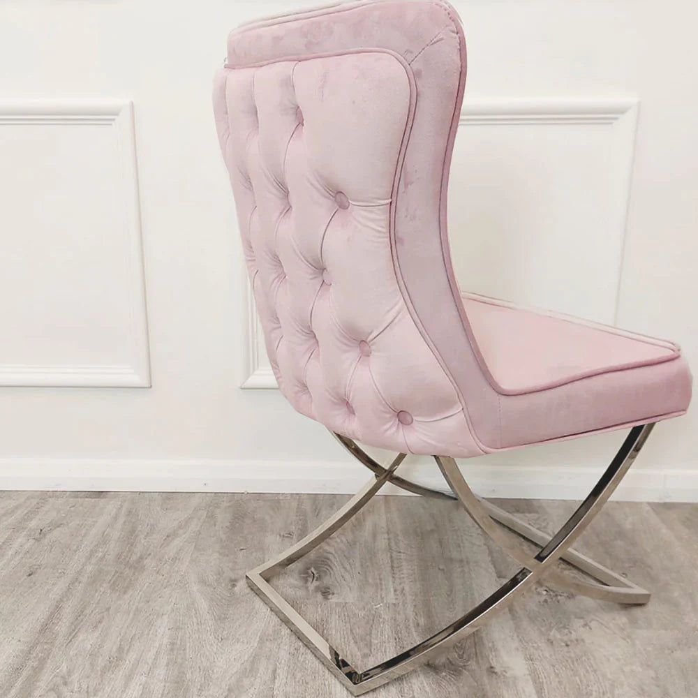 Sandhurst Dining Chair X Leg in Pink Velvet
