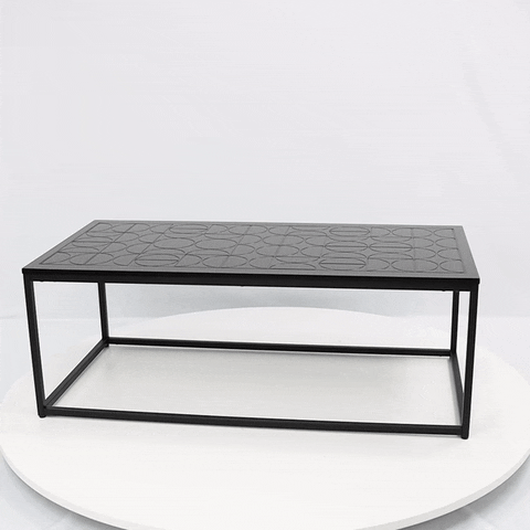 Embrace an on-trend dash of black into your interior with the versatile Solon Coffee table which will fit seamlessly into any interior’s colour scheme. The black wooden table top with an elegant geometrical semicircle design sits atop a refined black metal base.