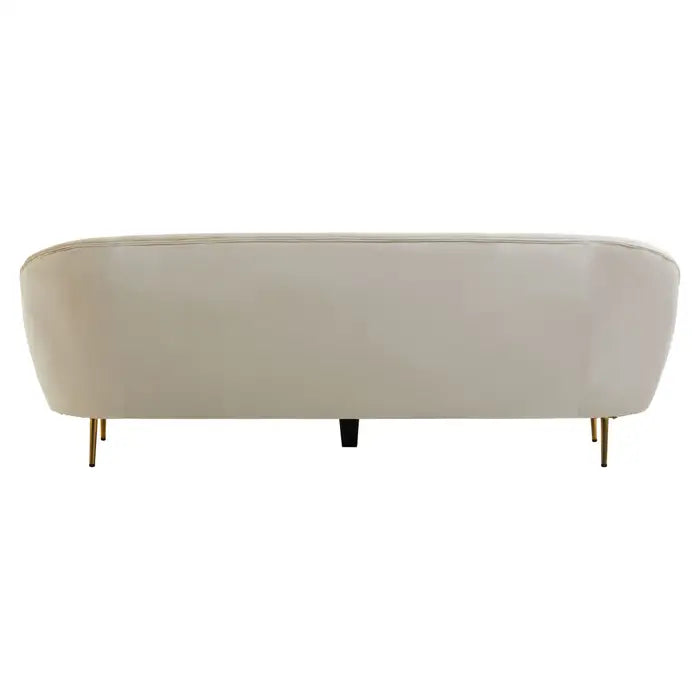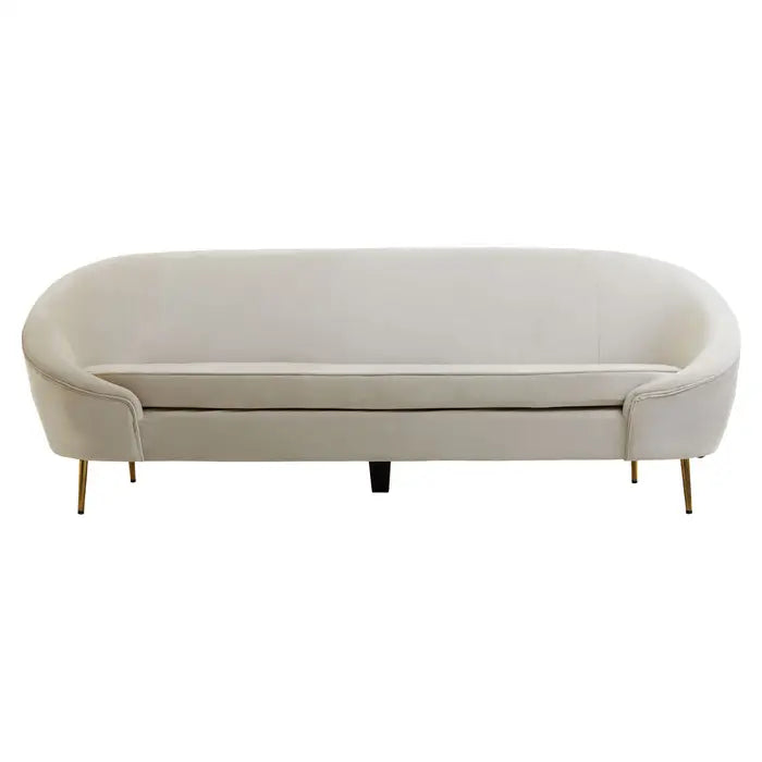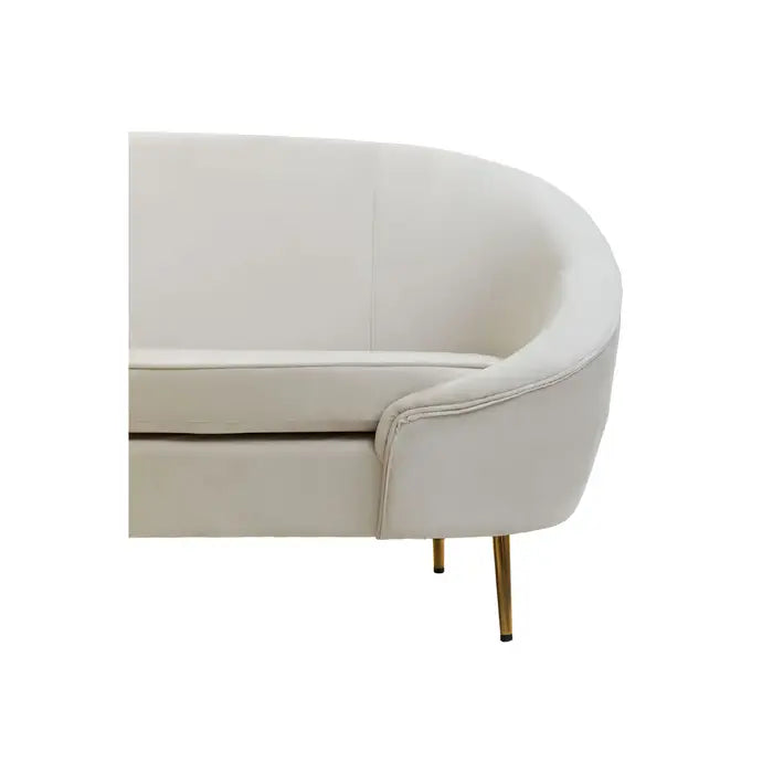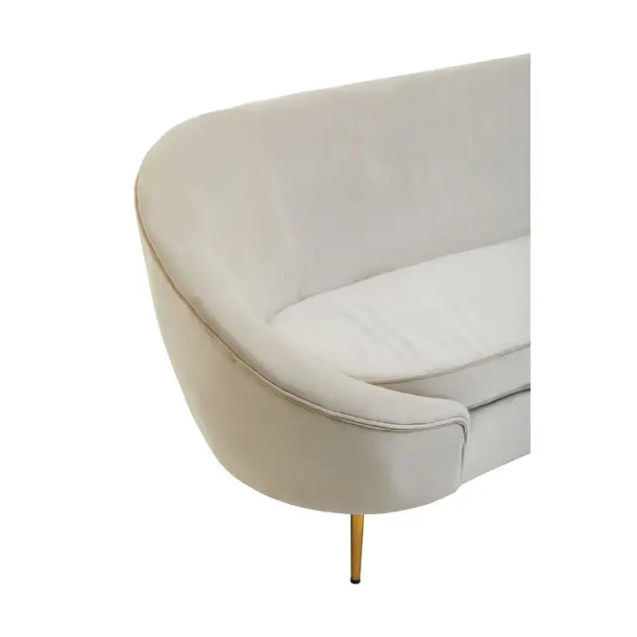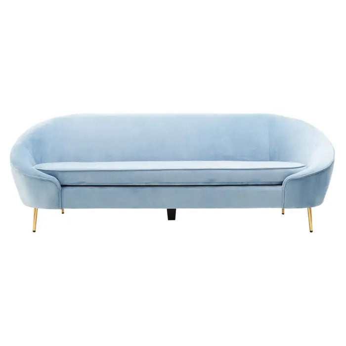 This three seat velvet sofa will make a focal point with its curved silhouette, sloping arms and gold finish metal legs.